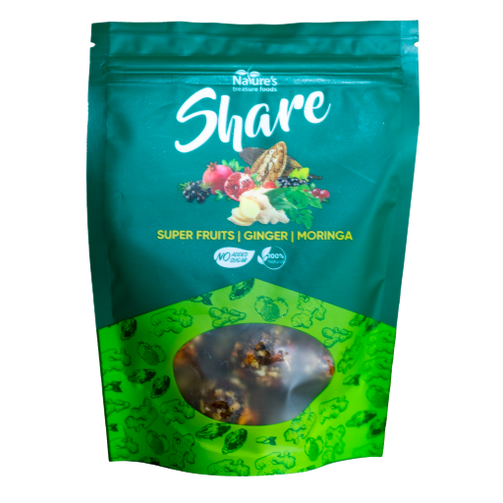 Superfruits Moringa & Ginger: Pure Oats (gluten free), Ginger, Moringa, Cashew, Pineapple, Banana, Peanuts, Mango, Papaya, Vitamin E Oil, Honey and Brown Rice Syrup.